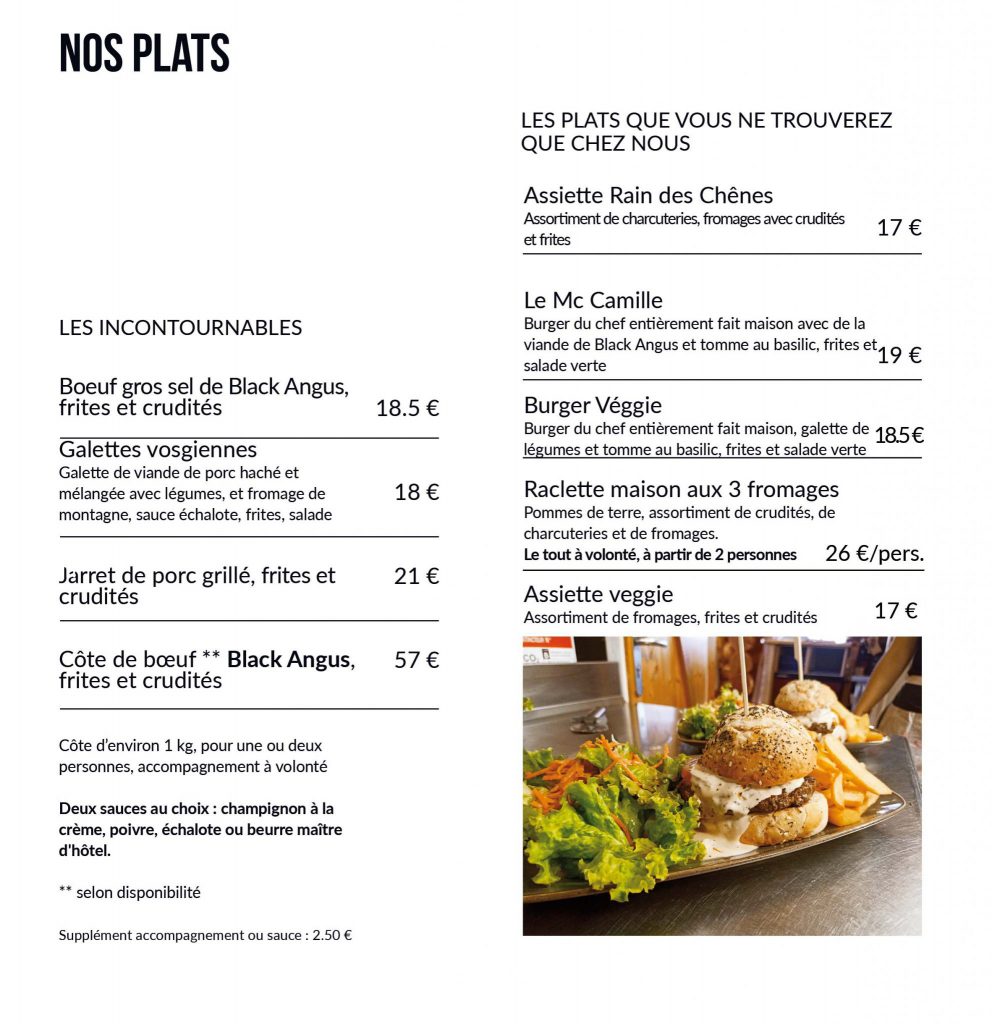 Plats chauds servis de 12h à 14h et de 18h30 à 21h00